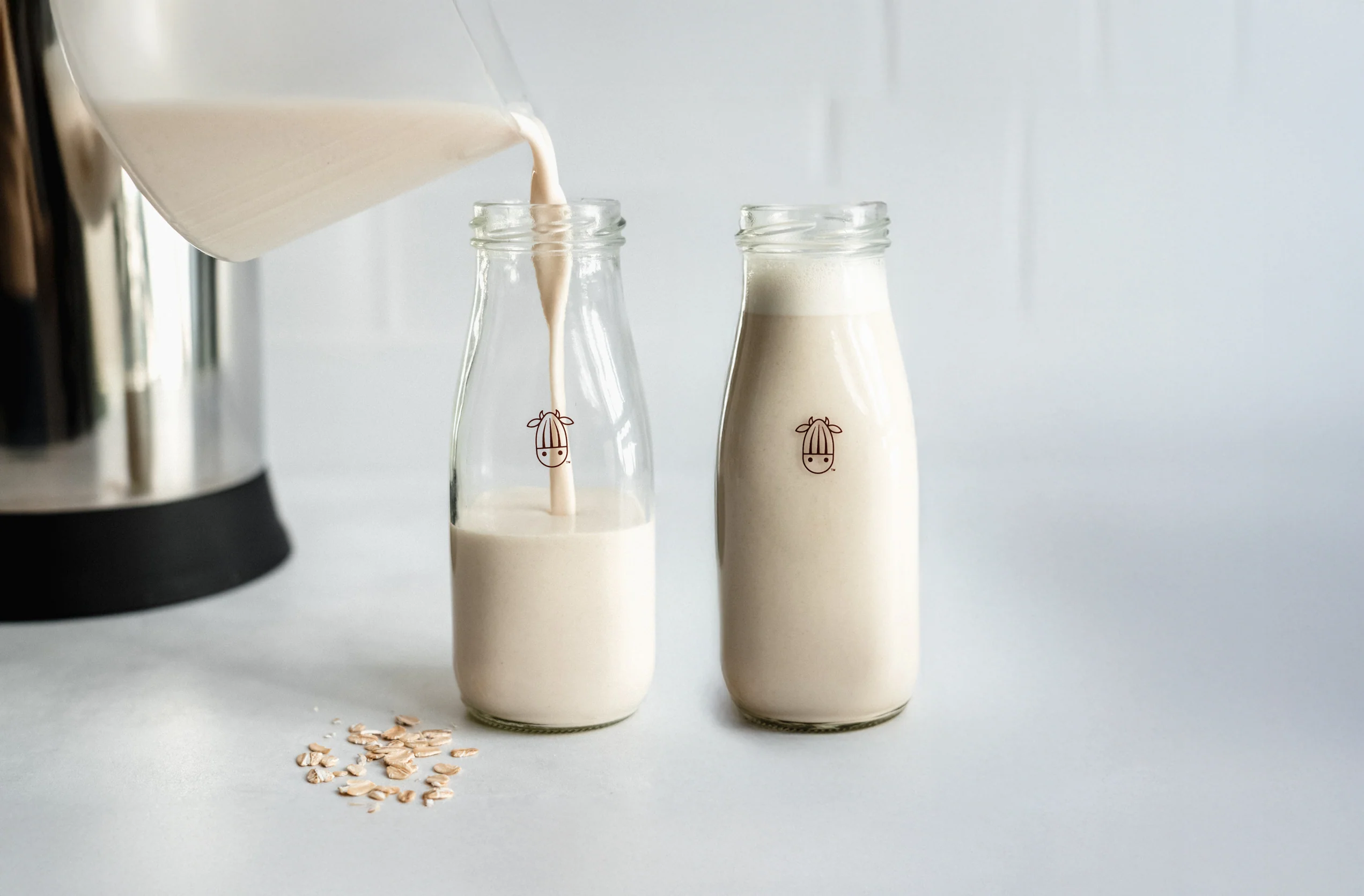 Sip and serve your favorite homemade plant-based milk in photo-ready 10oz glass bottles! This set of 2 also includes aluminum lids, making it easy to grab and go or even save a little for later. If you’re looking for larger storage options, try the Almond Cow Glass Jug.